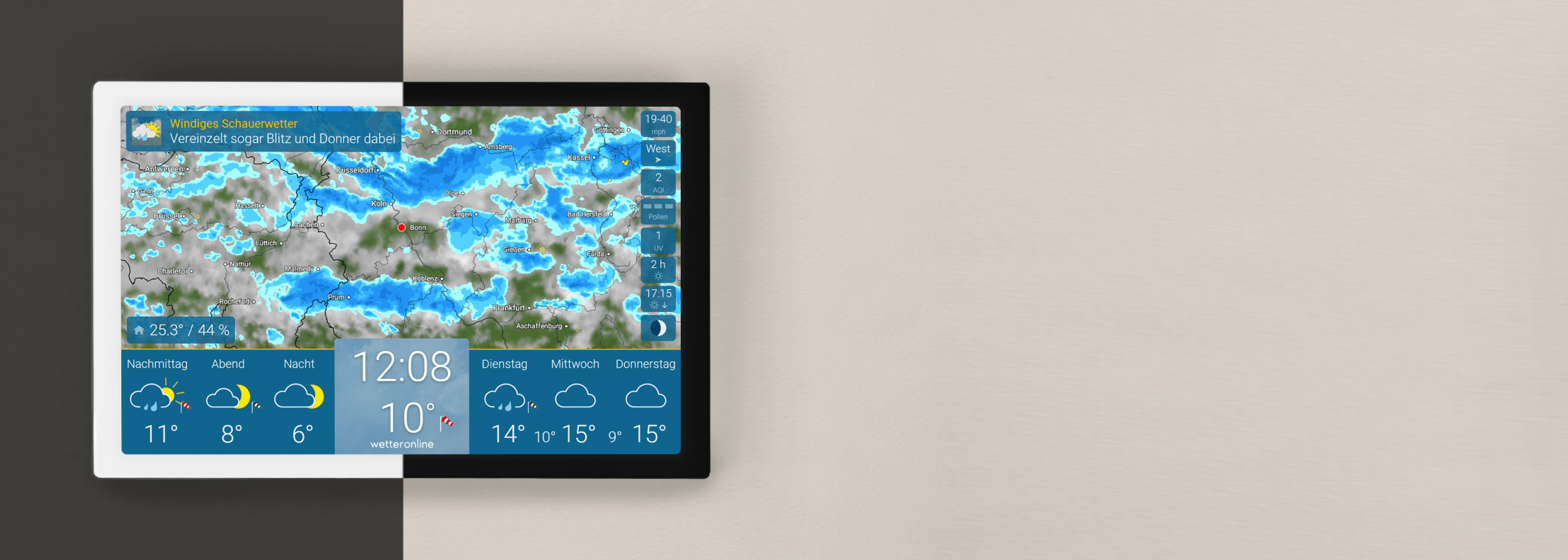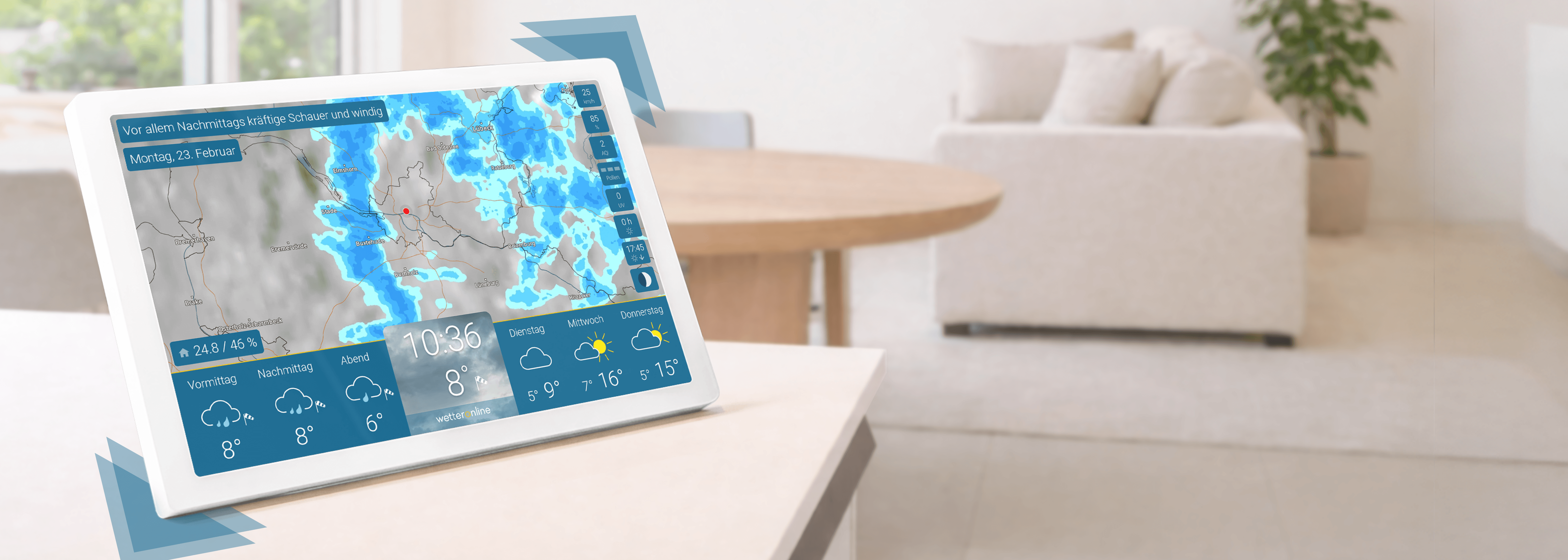 wetteronline home zeigt dir das Live-WetterRadar für die nächsten 90 Minuten – perfekt, um frühzeitig zu sehen, ob Regen oder Gewitter dich gleich erreichen. Als digitale WLAN-Wetterstation liefert sie dir präzise Echtzeitdaten direkt von WetterOnline. Ideal für Jogger, Pendler, Spaziergänger und alle, denen im Alltag schnelle, zuverlässige Wetterinformationen wichtig sind.