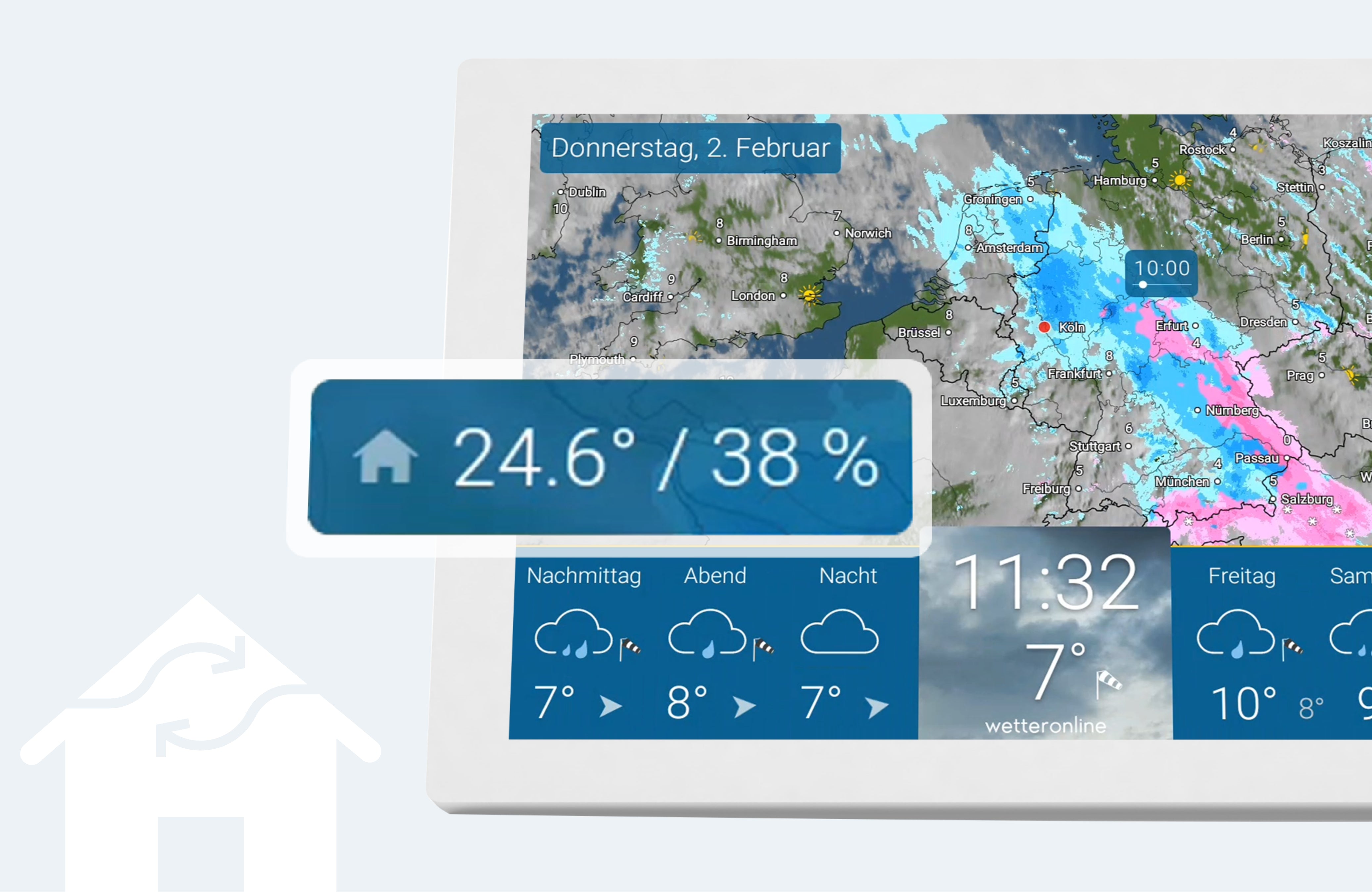 Ein in die Station integrierter Innenraumsensor misst Temperatur und Luftfeuchte. Diese Informationen helfen dabei, das Raumklima zu kontrollieren und die Temperatur effizient zu steuern.