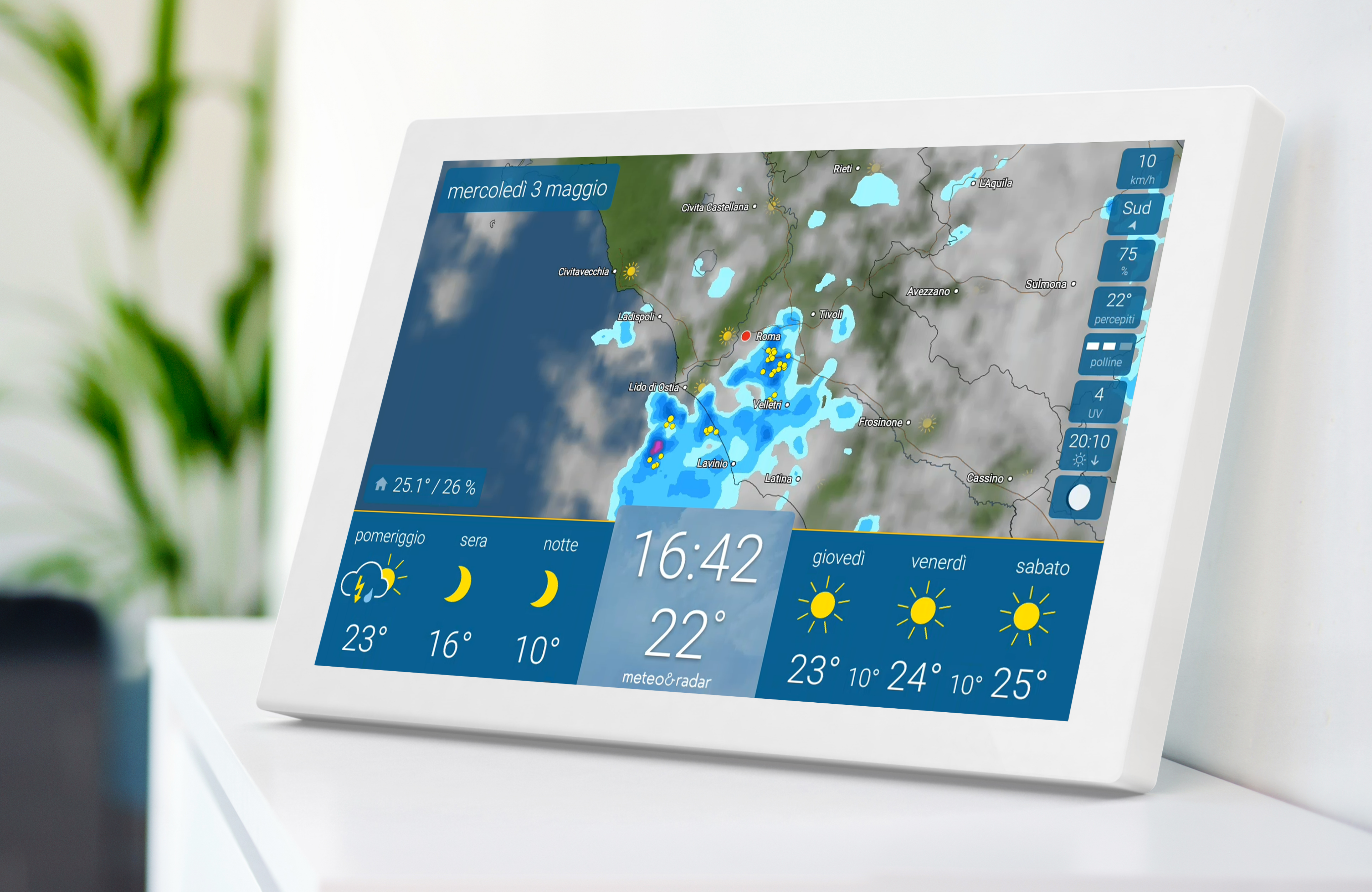 Il dispositivo mostra le informazioni sulle condizioni meteorologiche attuali di una determinata località, in qualsiasi parte nel mondo, tramite il posizionamento su un display HD con angolo di visione stabile e in una presentazione semplice e chiara. Con il Radar meteo è facile e immediato seguire il tempo in diretta per i prossimi 90 minuti. È possibile ingrandire la mappa per ottenere maggiori dettagli o ridurre per vedere come si svilupperà il tempo, anche in futuro. La tendenza meteo mostra le previsioni del tempo per oggi e per i prossimi giorni. La stazione meteorologica avvisa in caso di maltempo. È inoltre possibile visualizzare ulteriori informazioni meteorologiche, a seconda delle proprie esigenze.